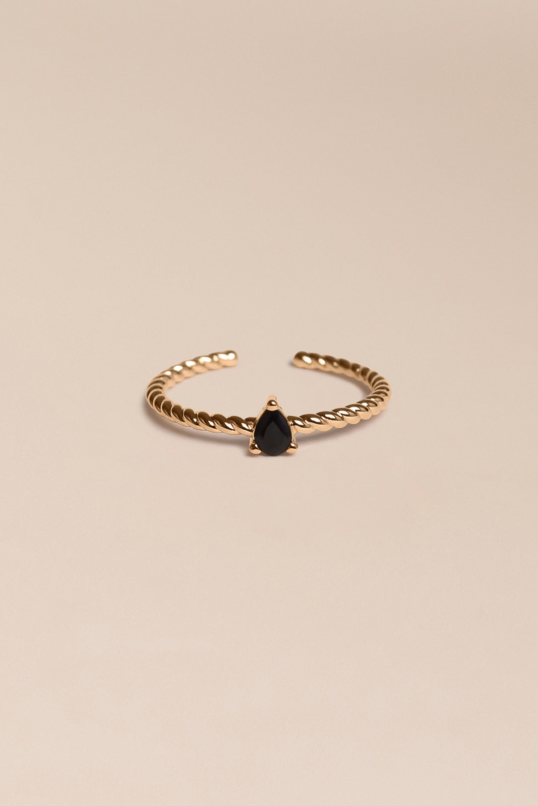 Our small, adjustable Iva ring in 3-micron gold plating set with a pretty black stone. A timeless ring for pairing with other fine or XL rings.