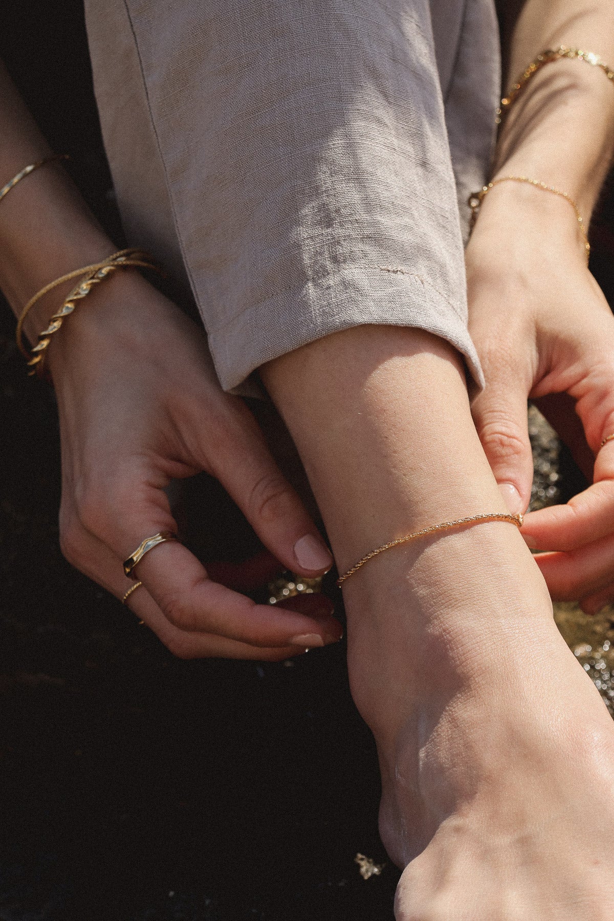 You loved the Ezra model, so we've added an ankle chain to take it everywhere you go! In 3-micron gold plating.