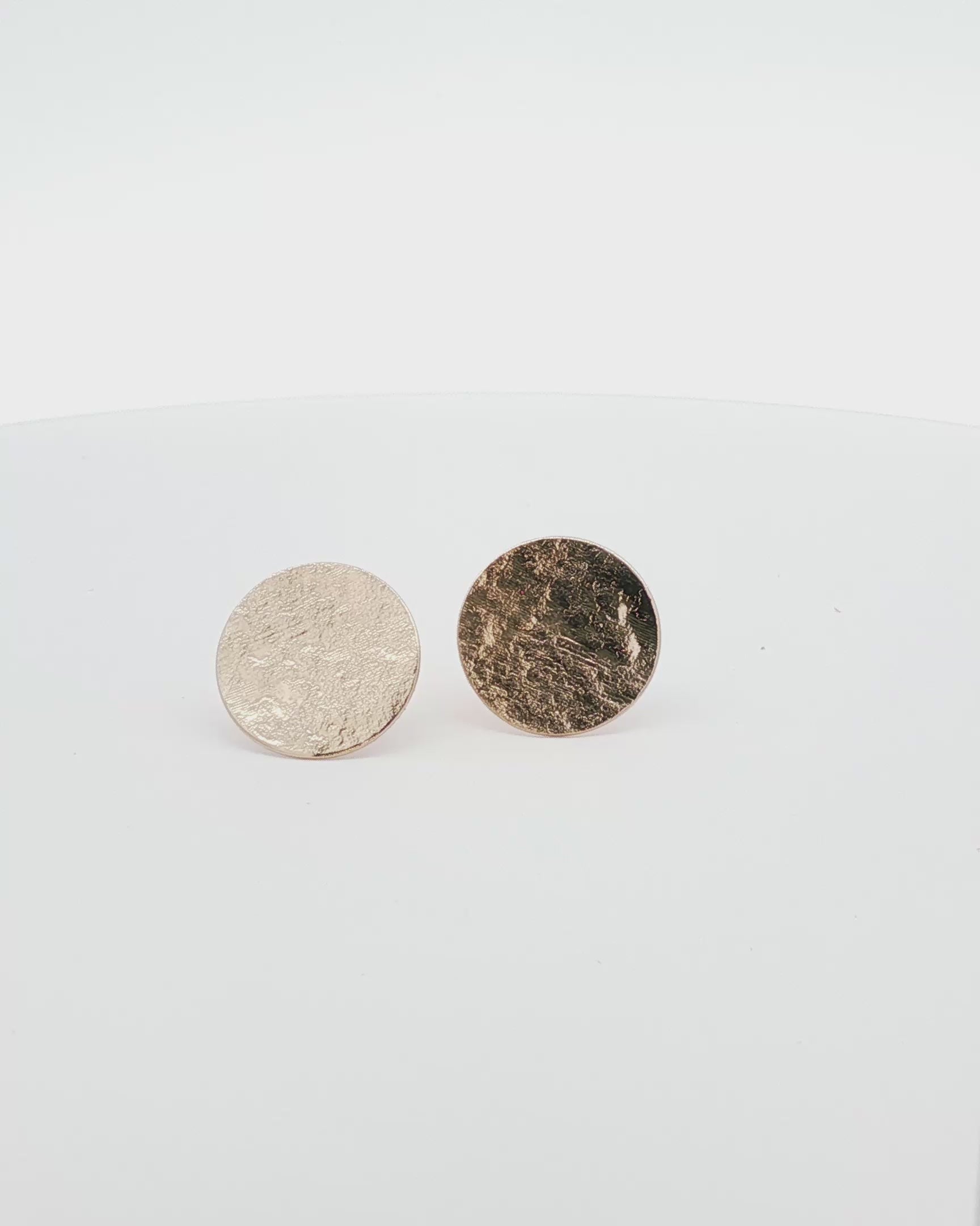 3-micron gold-plated earrings with a hammered-finish plate.