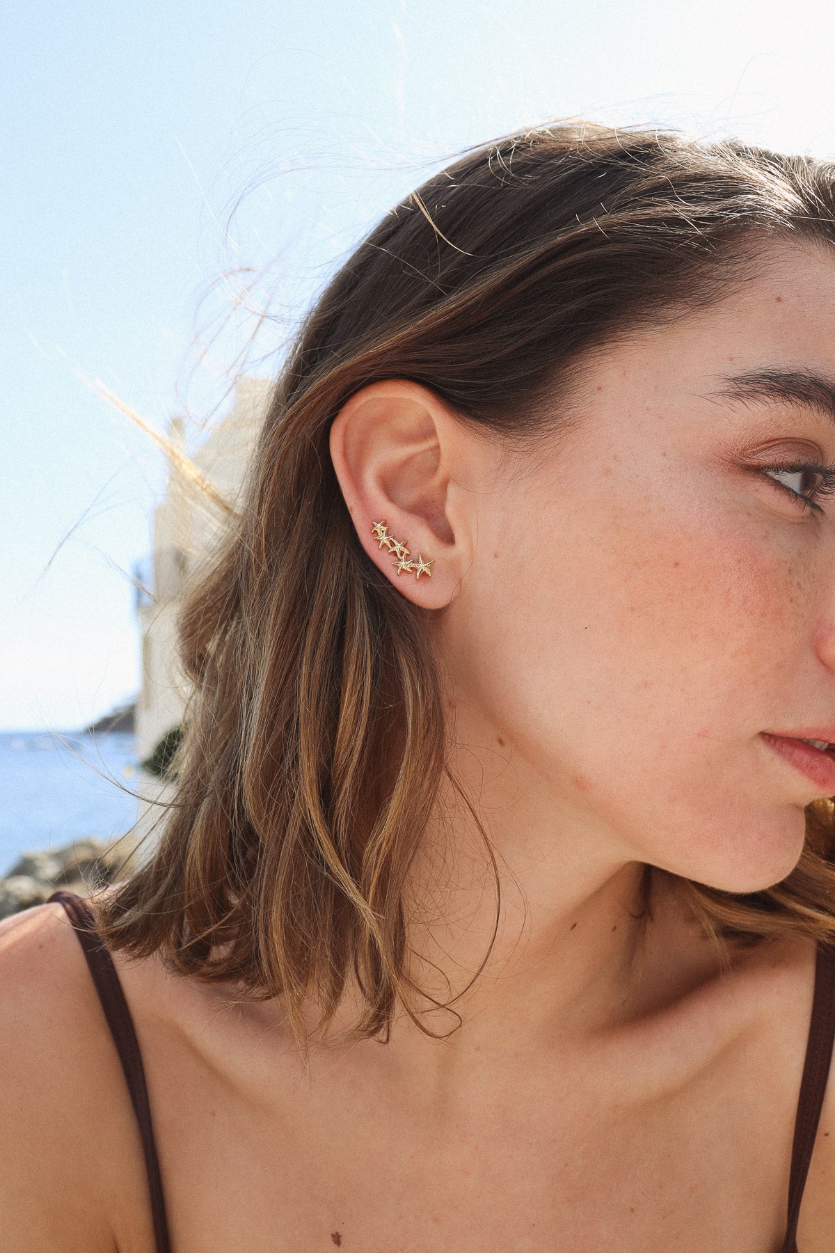 "J’ai enfin trouvé des contours d’oreilles qui tiennent vraiment bien grâce à la tige. En plus, ils habillent toute l’oreille avec un seul trou aux oreilles. Hyper contente"