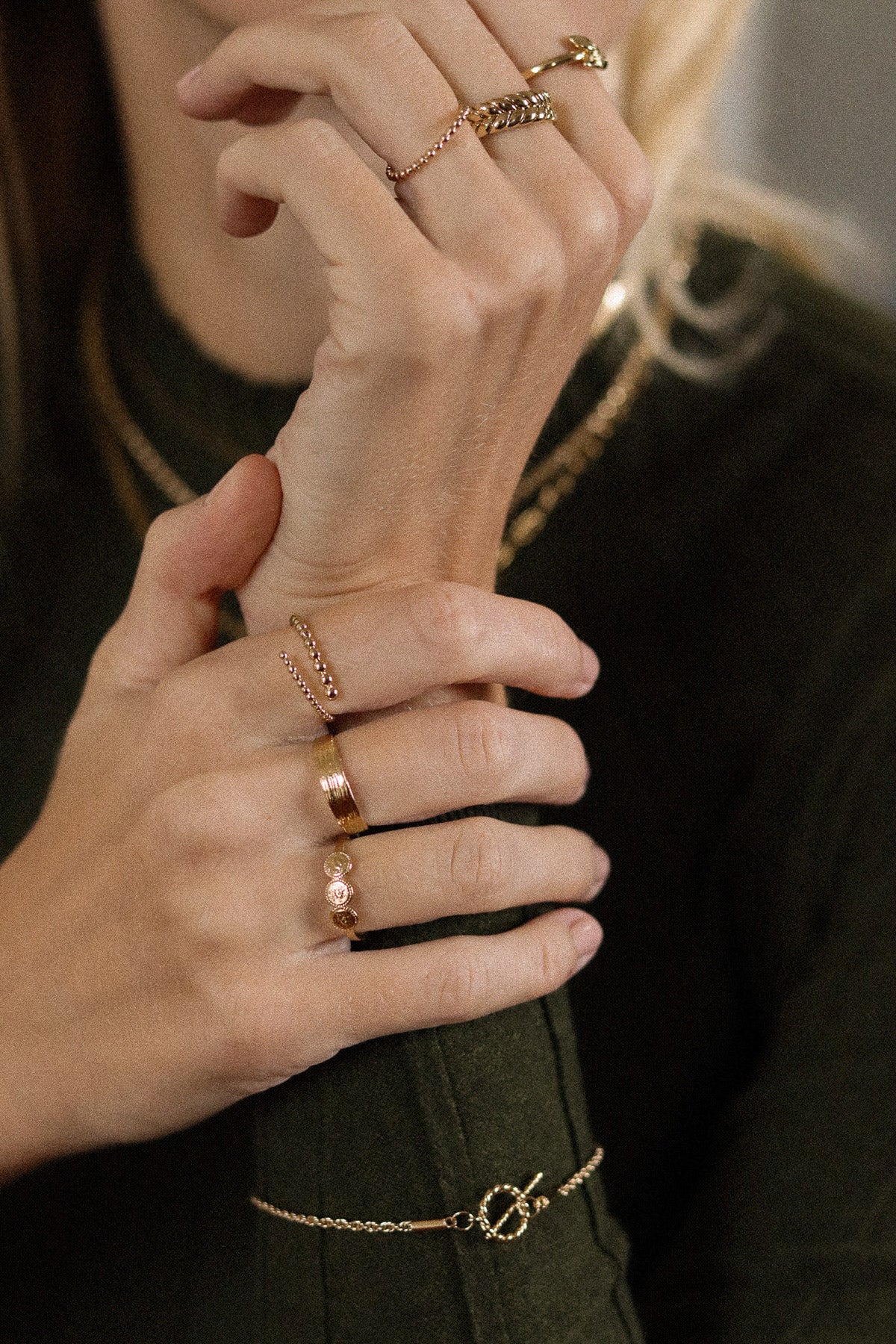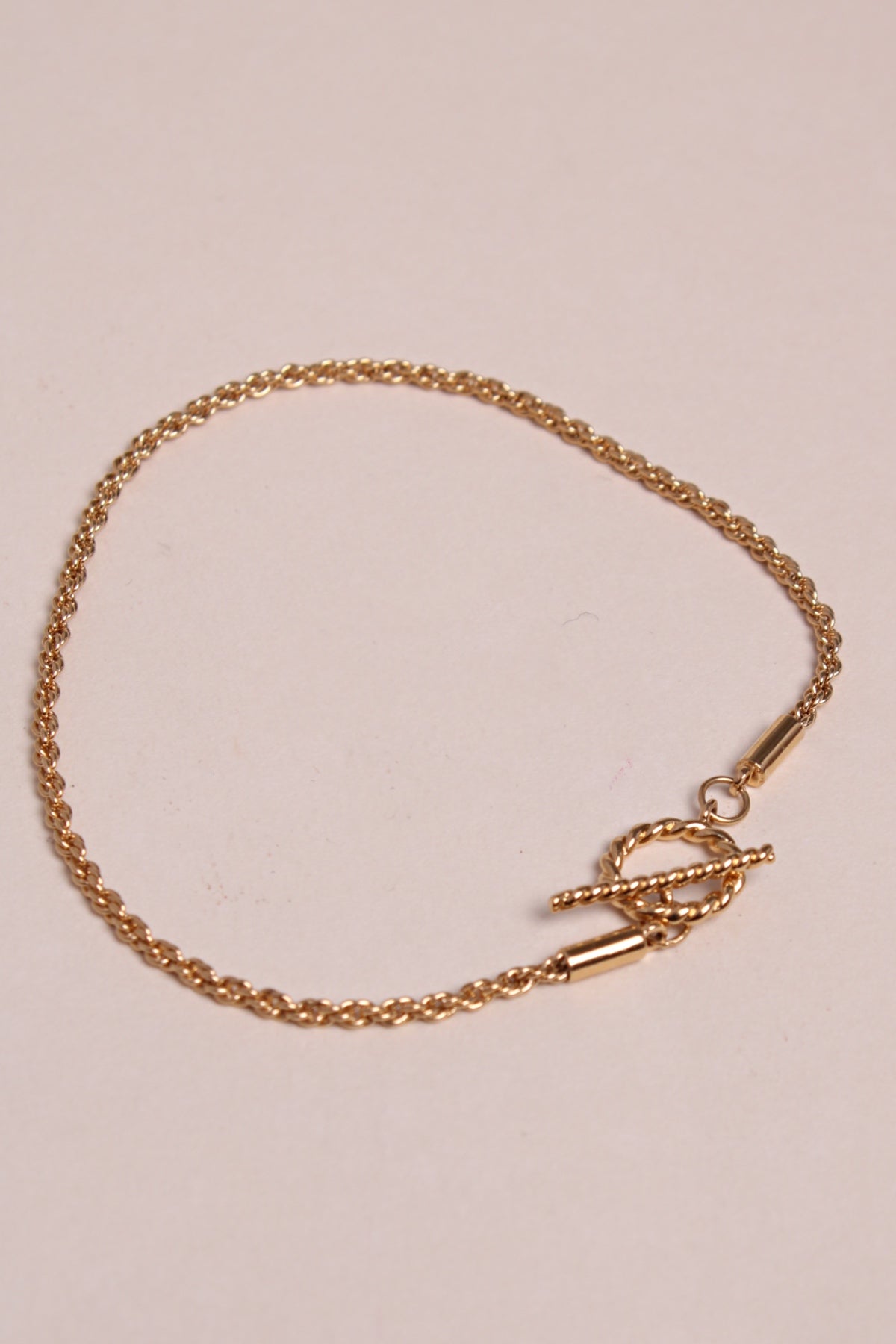 Découvrez notre bracelet Honorine, le seul de nos bracelets avec un fermoir en T. Sa chaîne torsadée lui donne un effet brillant et original.