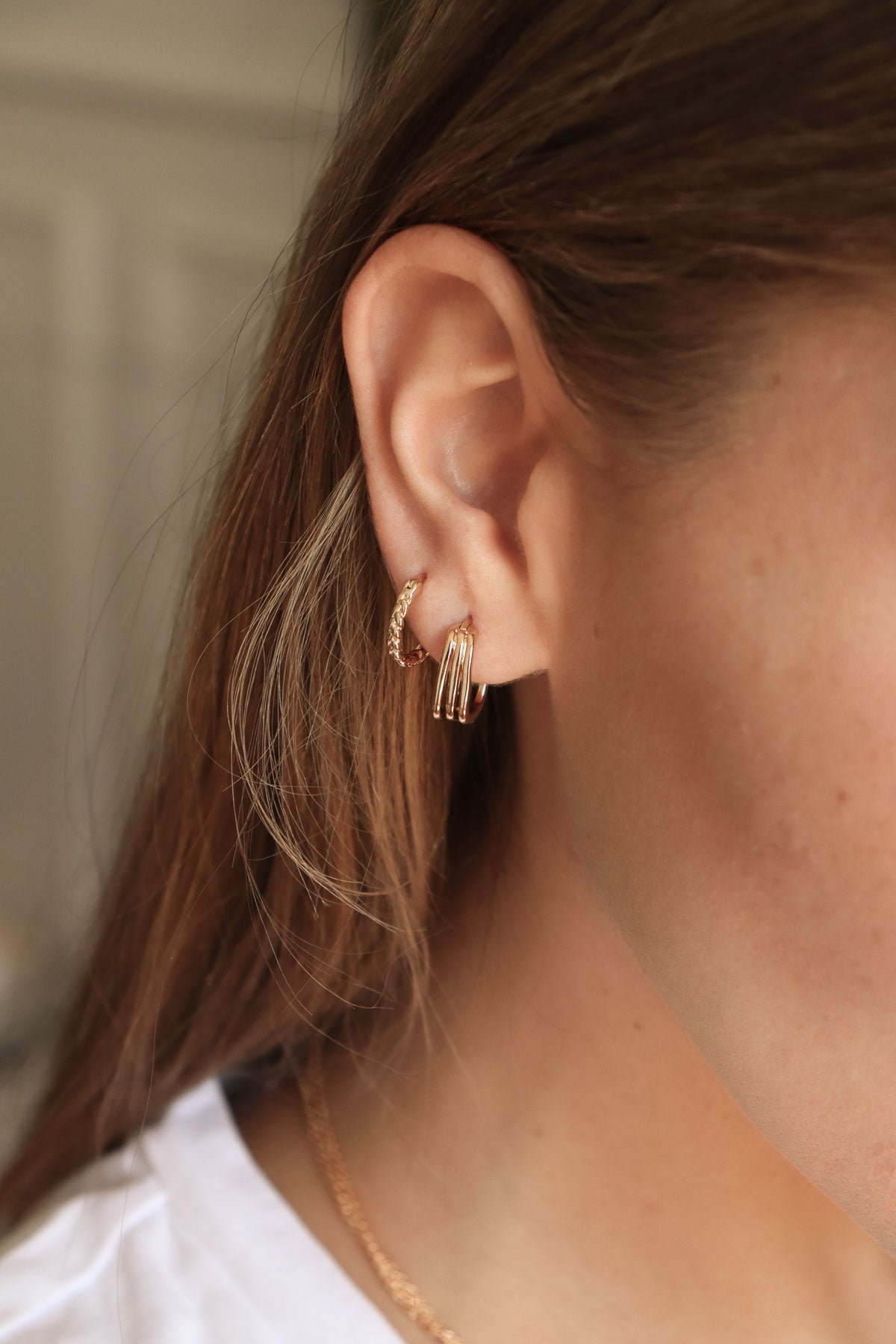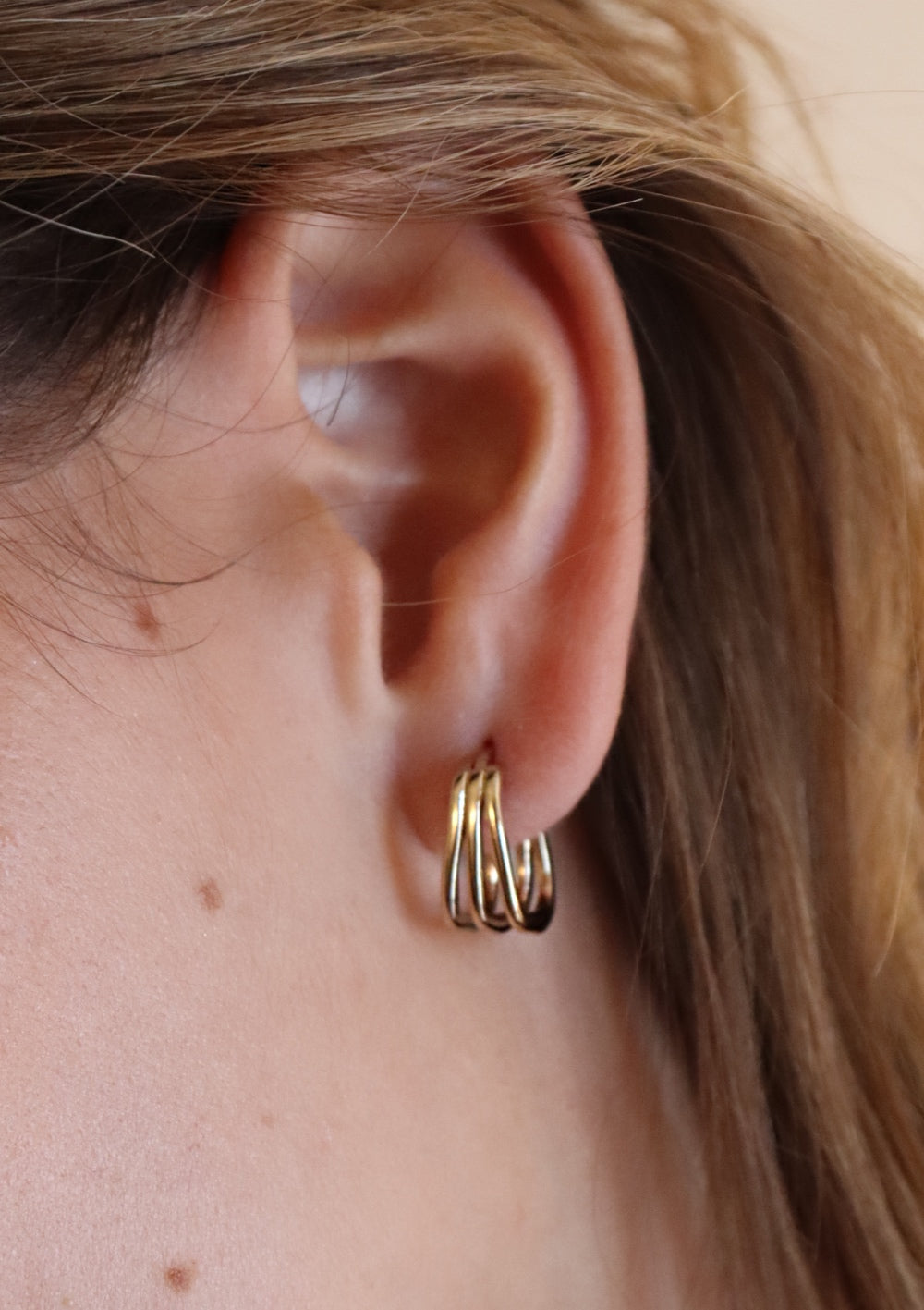 Petites créoles discrètes de forme carrée se dissociant en 3 éléments.