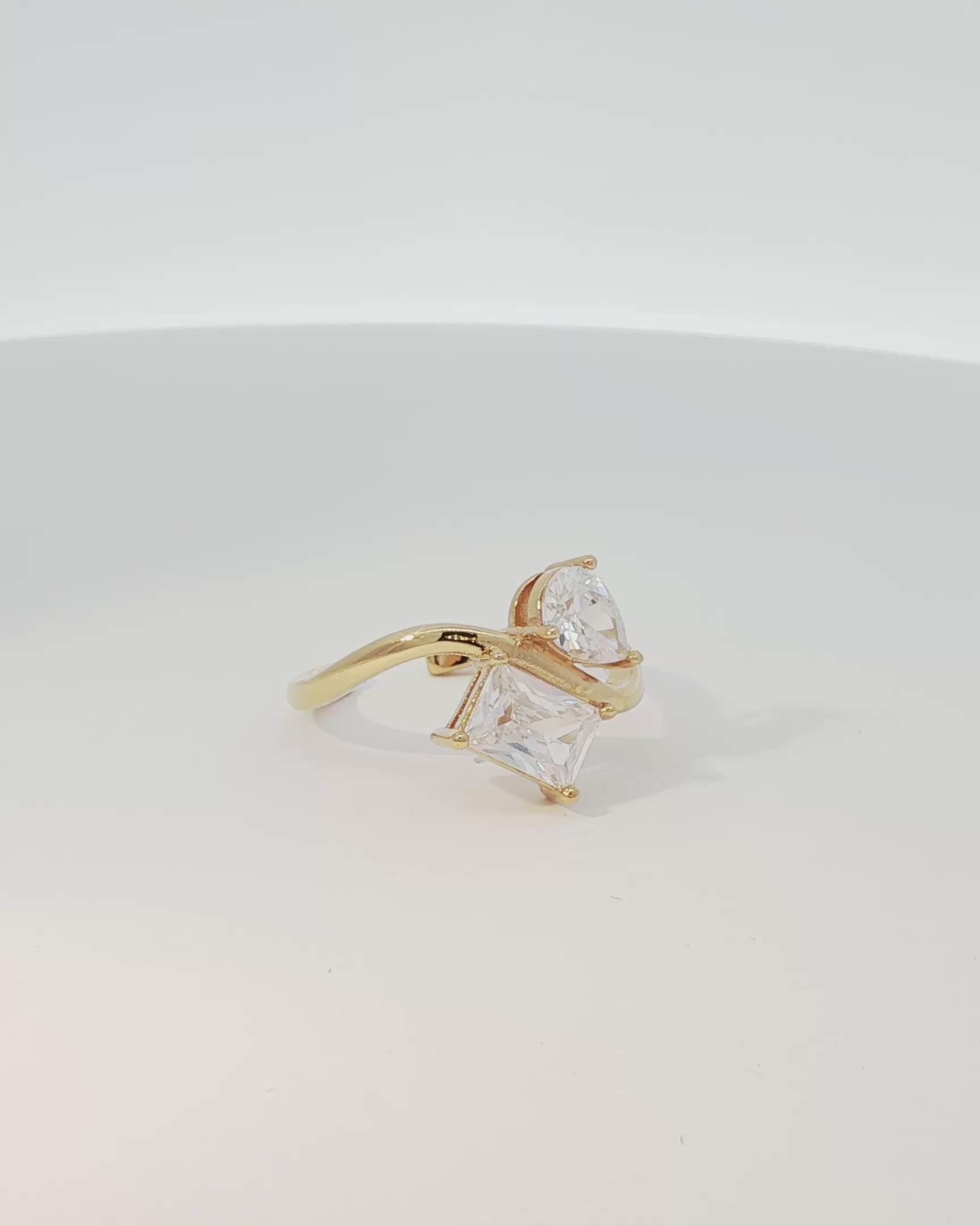 Découvrez notre bague Gio et ses deux zircons blancs en forme de poire et de rectangle. Une bague toute en finesse, idéale à glisser sous le sapin. Bague réglable.